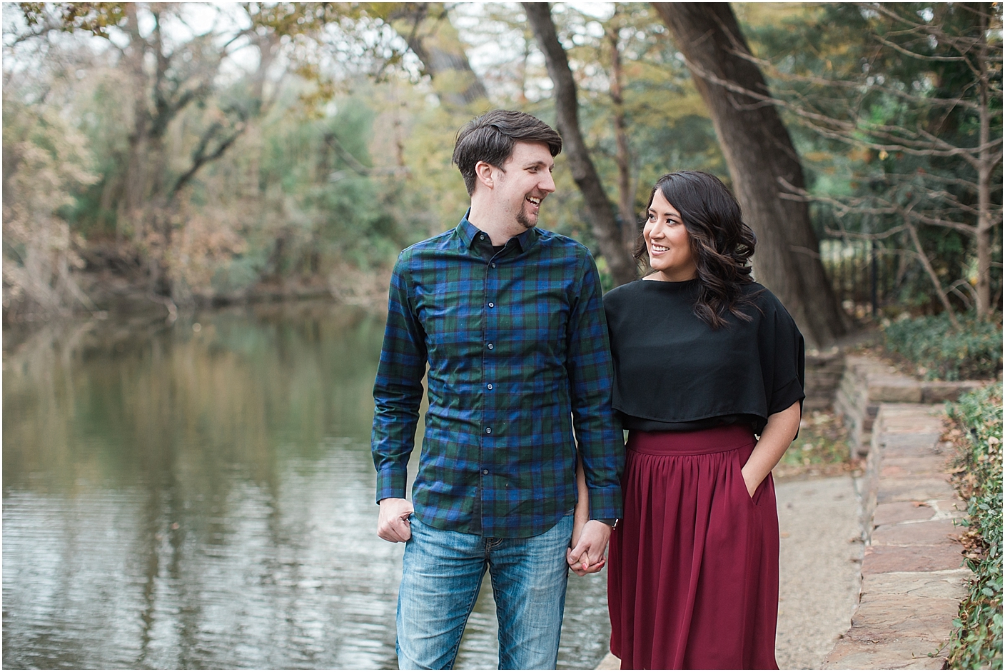 Laura and Charlie are a solid couple. They’re like a glue that’s inseparable. One reason why I love working with them is that they have history. They have been together many years and their bond is unbreakable. They are making their love official this Spring and I can’t wait to share in it with them. We found that the Dallas Turtle Creek area was a perfect spot for their engagement photos. It’s where they live and frequent as a couple. The lush trees and beautiful landscape suited their style and was a perfect backdrop to capture the love between them. We even got to take some photos right where their wedding will happen! Here are a few of my favorites from our session!