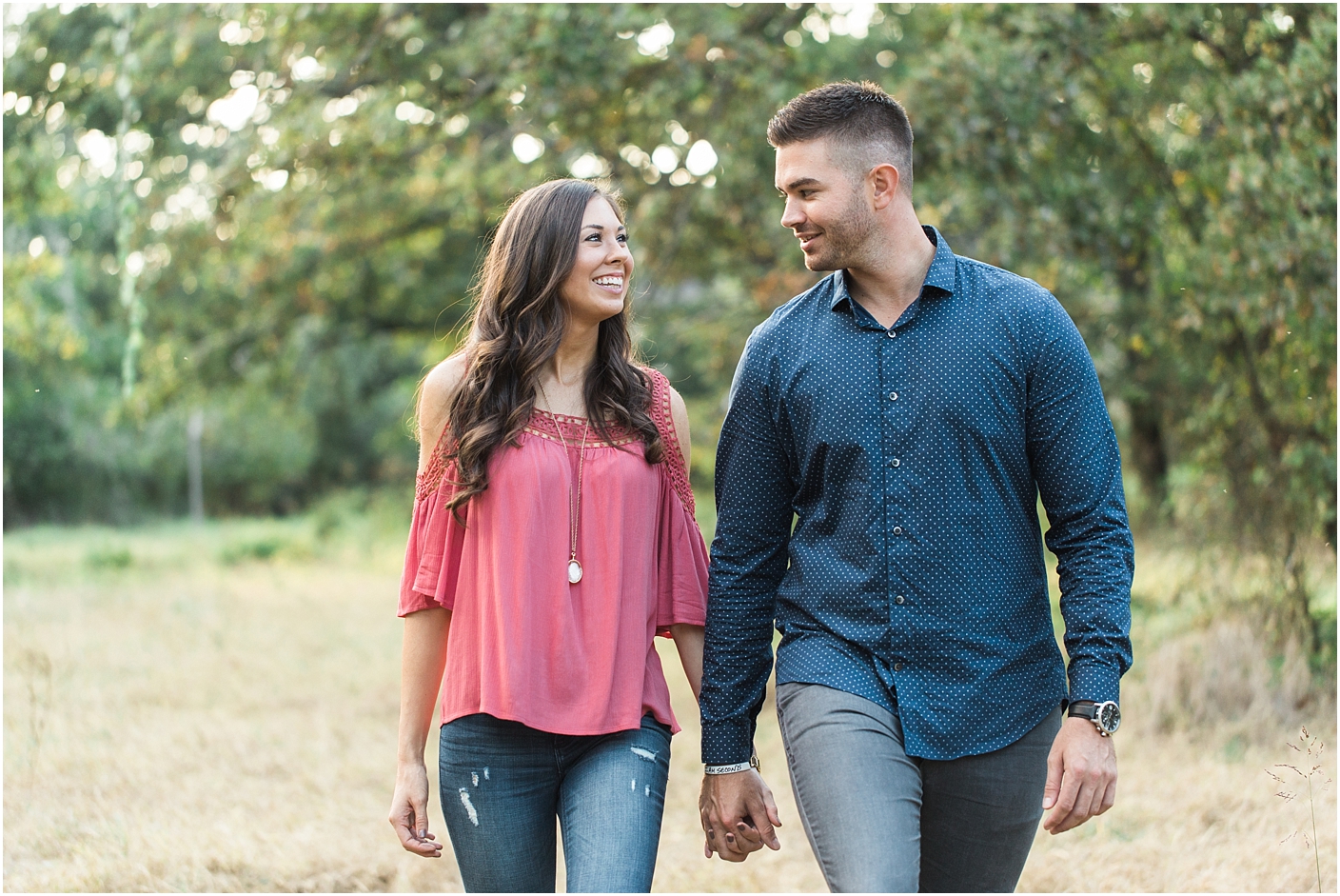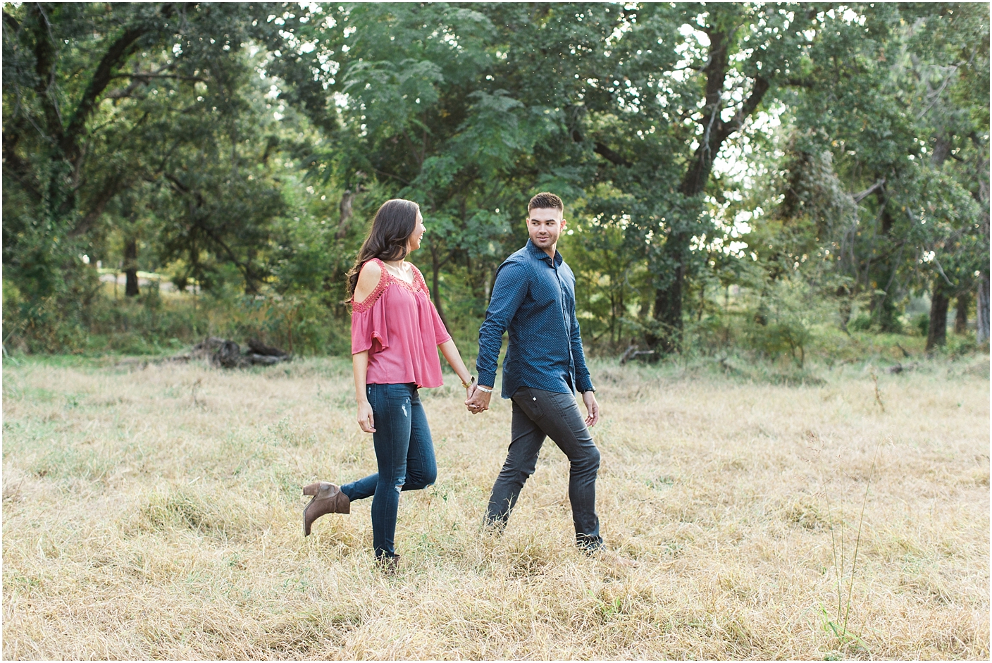 We spent the late afternoon in Southlake taking engagement photos for Lauren and Joseph. It was a perfect backdrop to document their love for one another. I was ever so lucky to get to know Lauren and Joseph a little bit before their engagement session because they were guests at a destination wedding I did! It’s always an honor when my couple’s recommend me to their friends! Even though they are having a bright and sunny spring wedding, Lauren wanted to incorporate the fall palate for her engagements. These two are so crazy about each other, they make my job of capturing it very easy!